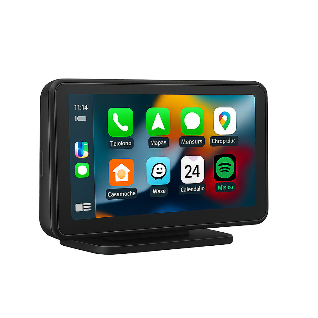 Actualiza tu coche en minutos: esta pantalla HD IPS de 7" añade **CarPlay y Android Auto inalámbricos** sin cambiar el radio, compatible con el **99% de los autos**. Navega, llama y escucha música con **control por voz** y audio por **AUX, FM o altavoz integrado**. Conexión estable, imagen clara y montaje plug & play. **Conduce moderno, sin cables ni complicaciones.