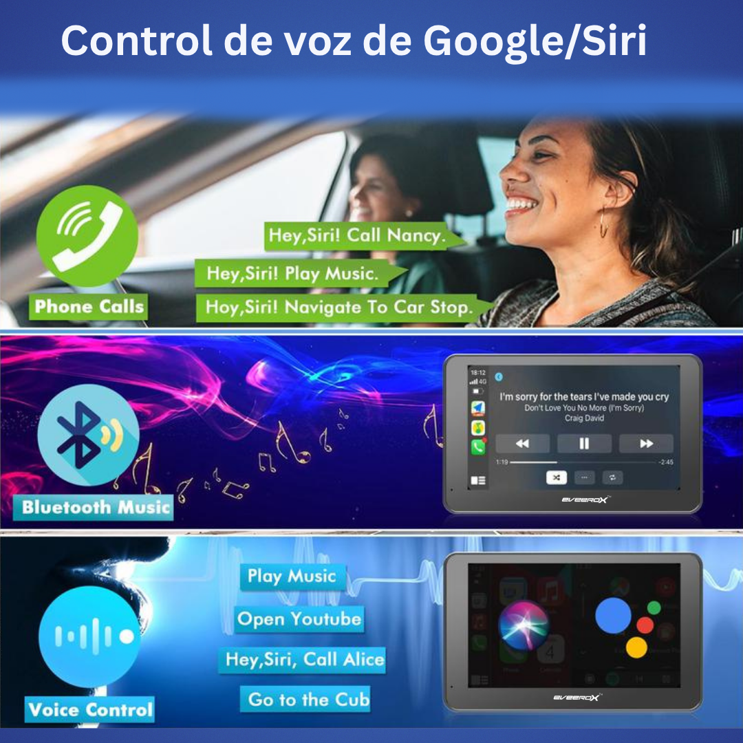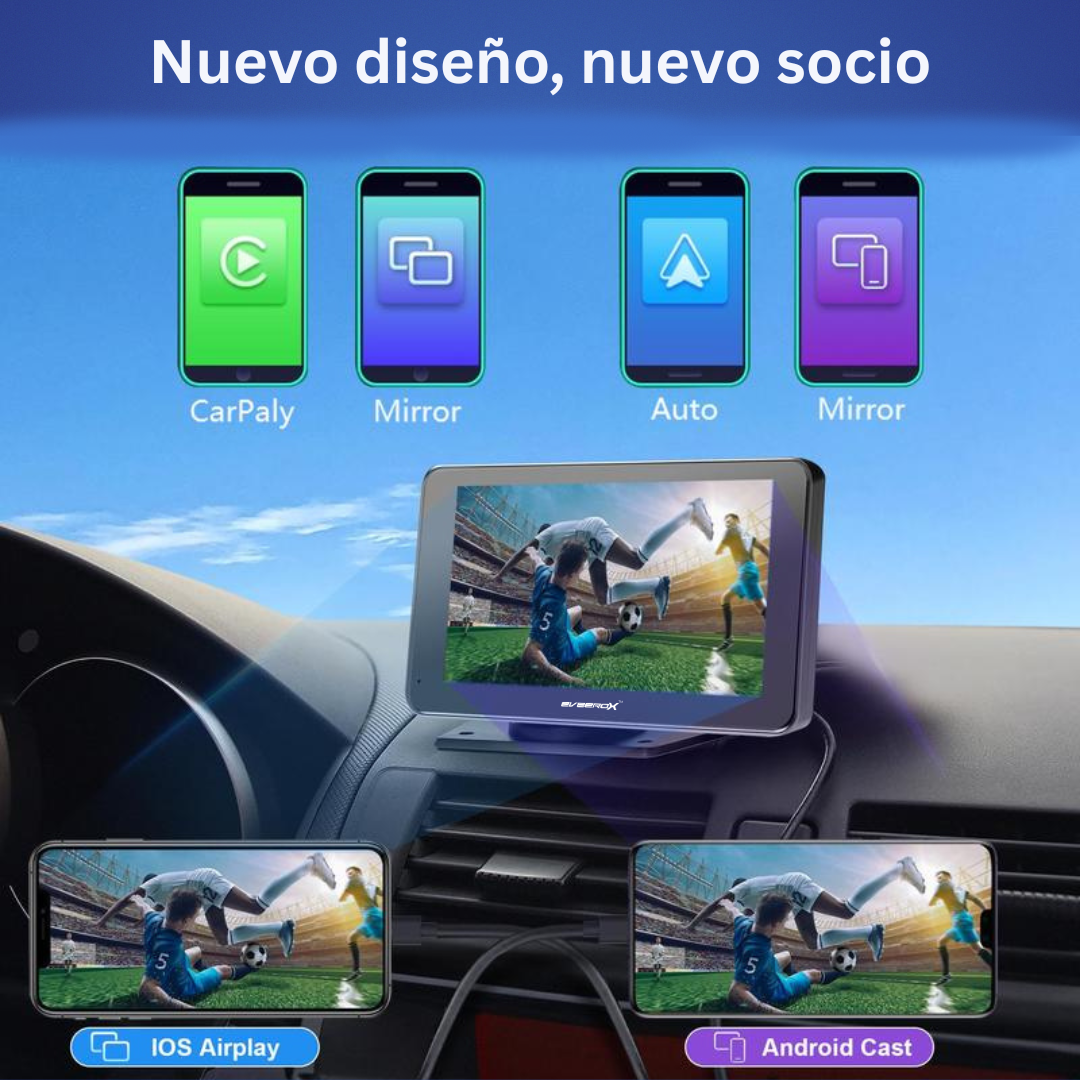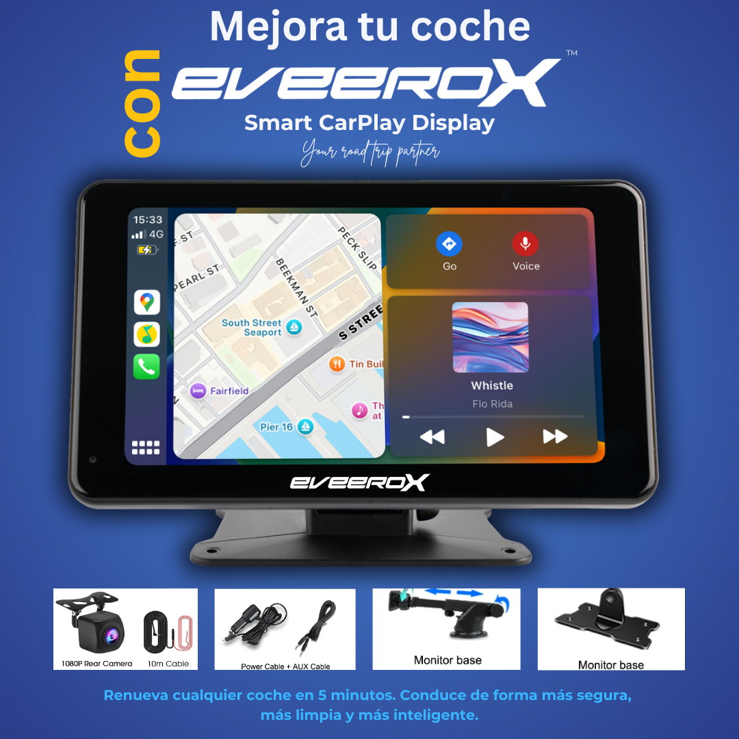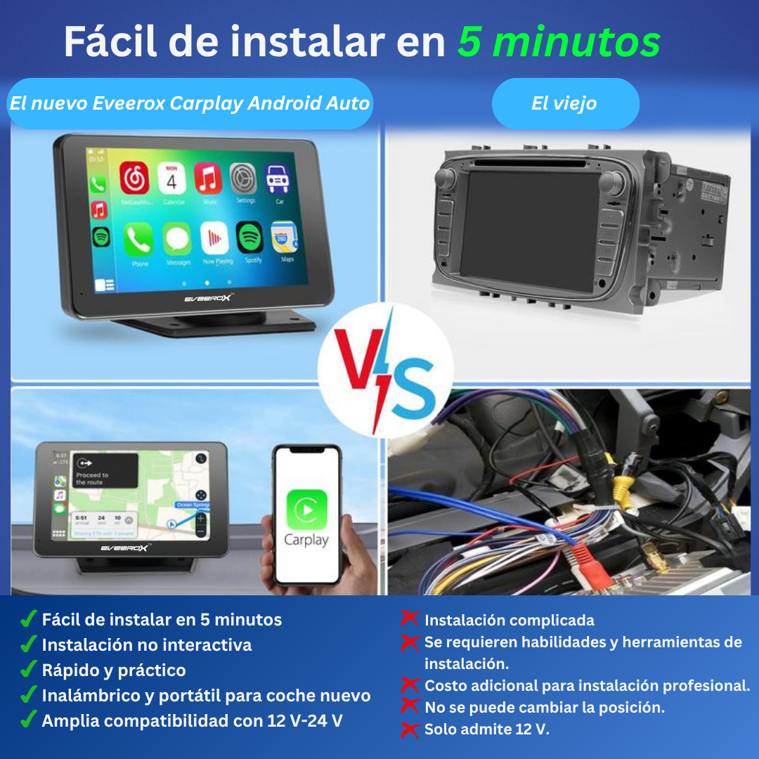 La Pantalla EVEERO transforma tu coche en un vehículo inteligente con Apple CarPlay y Android Auto inalámbricos, una pantalla HD de 7 pulgadas, instalación en menos de 5 minutos y control por voz con Siri o Google Assistant. ¡Aprovecha la oferta de $64 hoy!