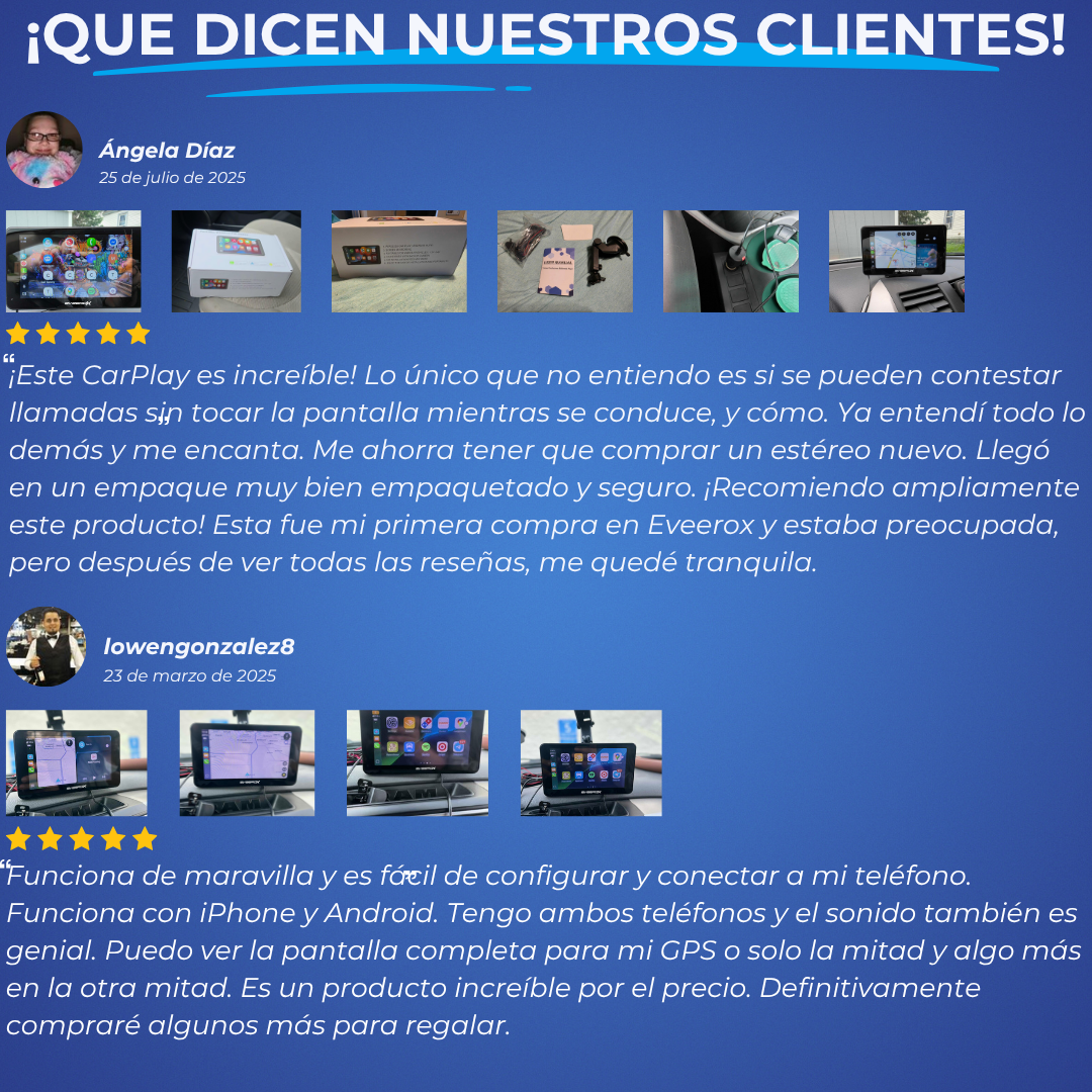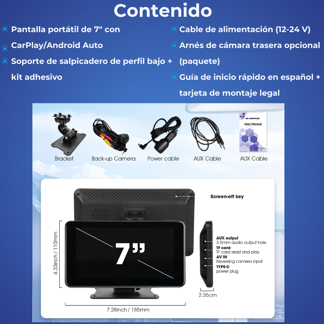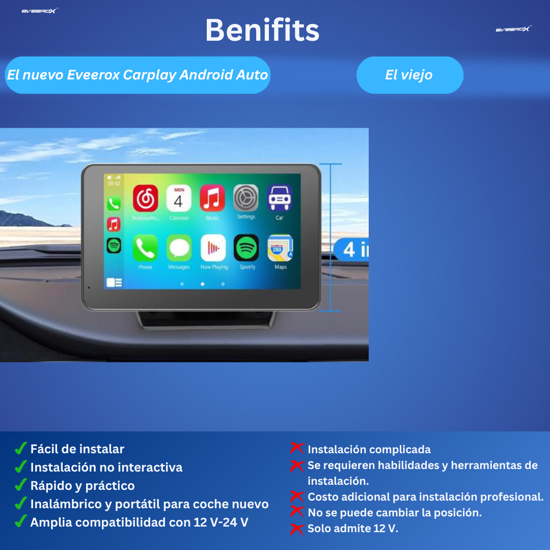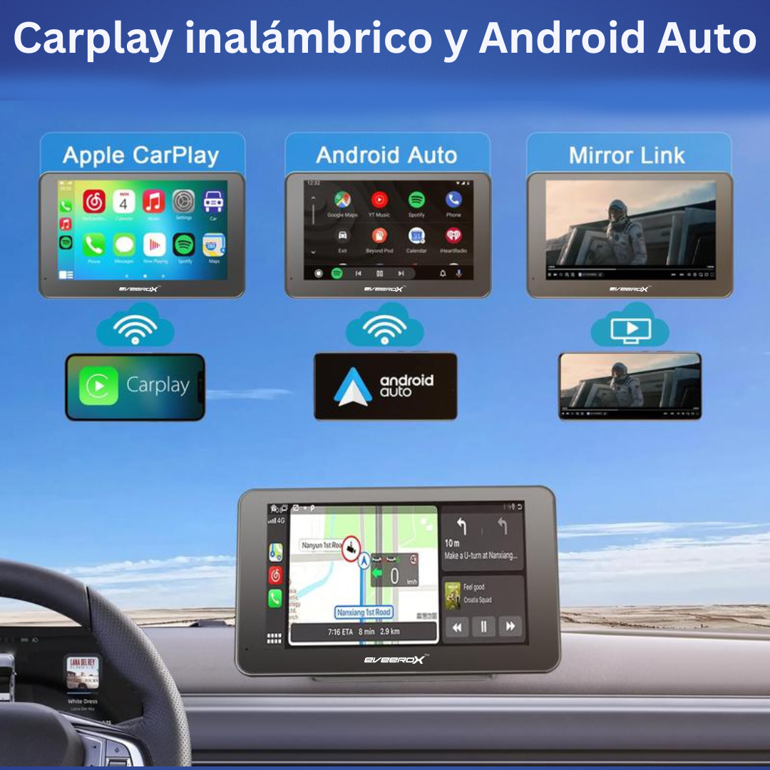 La Pantalla EVEERO transforma tu coche en un vehículo inteligente con Apple CarPlay y Android Auto inalámbricos, una pantalla HD de 7 pulgadas, instalación en menos de 5 minutos y control por voz con Siri o Google Assistant. ¡Aprovecha la oferta de $64 hoy!